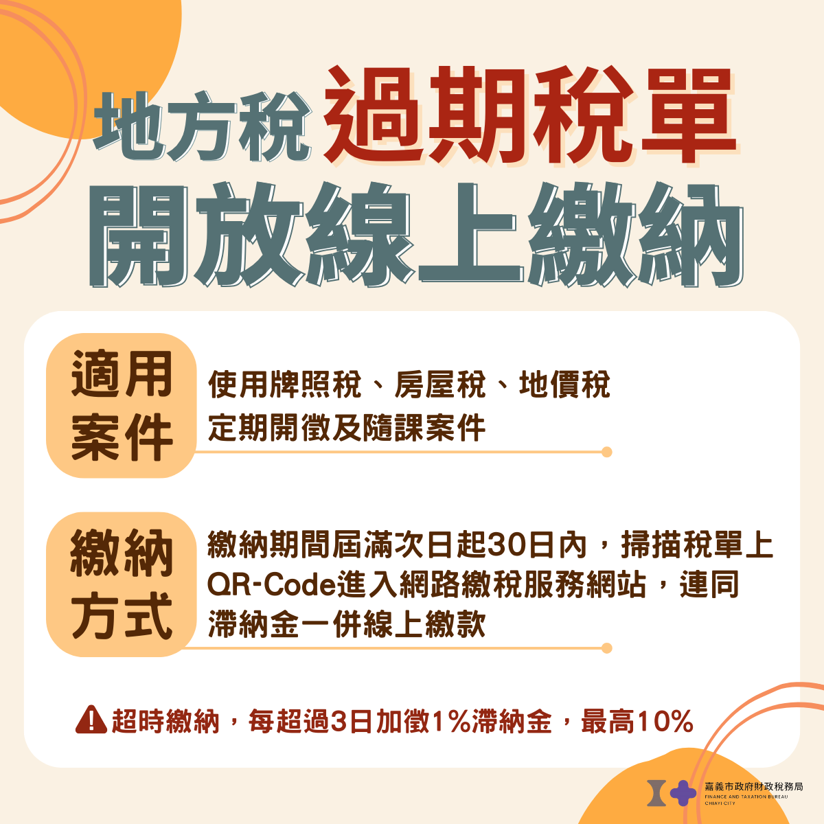 嘉義市政府財政稅務局表示,近來有民眾詢問114年使用牌照稅稅單已經過了繳納期限,要如何繳納?
