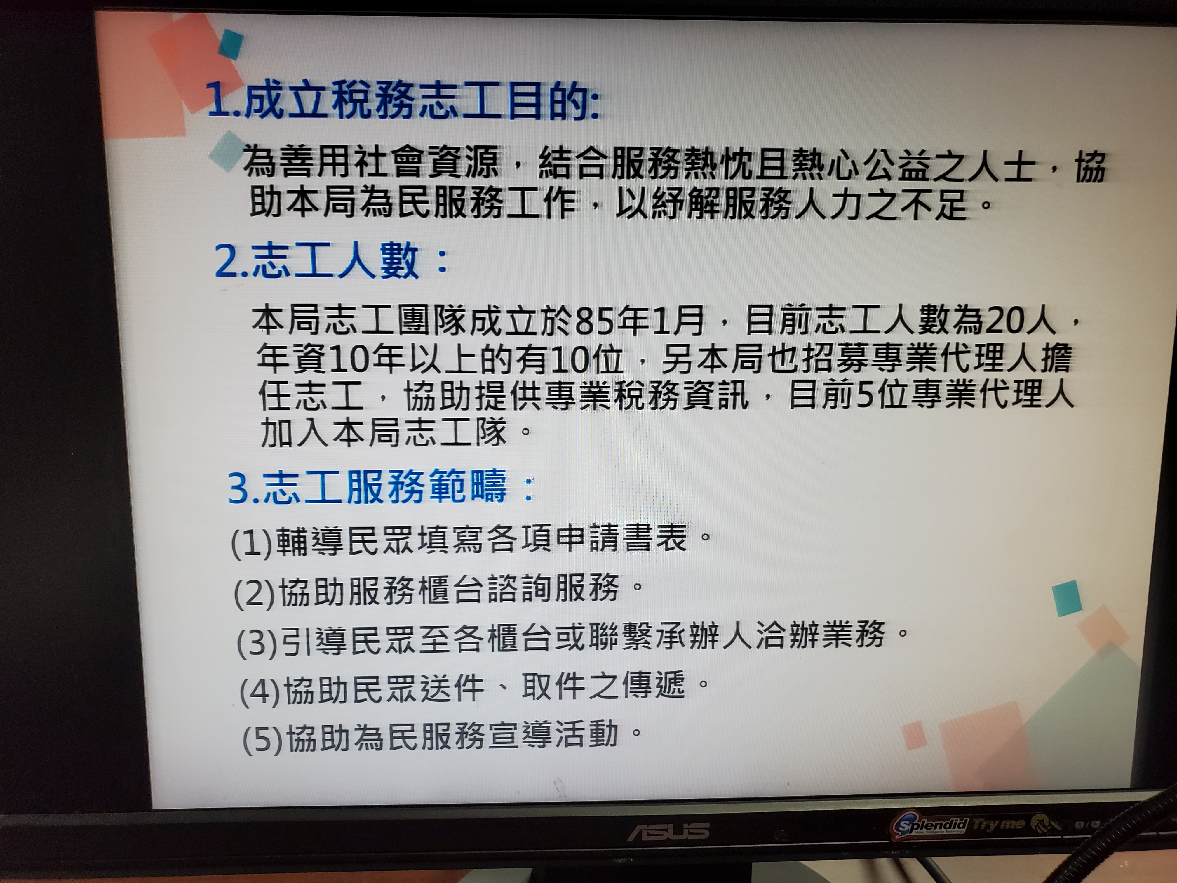台東縣稅務局參訪-觀摩志工業務